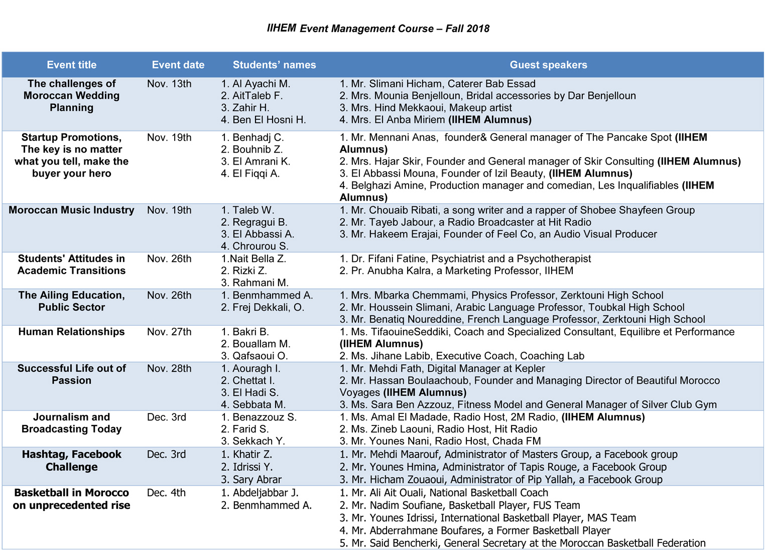 Dans le cadre du cours intitulé " Event Management ", les étudiants ont organisé des conférences animées par des professionnels invités de différents secteurs et portant sur divers sujets.