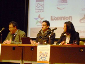 Une autre conférence organisée sous le thème de « l’entreprenariat entre le discours et la réalité ». Cette conférence s’est déroulée le 20 février 2010, au siège de la Bibliothèque Nationale du Royaume à Rabat. Elle a été animée par Mr. Joseph Chaînes, expert international, Mme. Omayma Achour, Conseillère du Ministre de l’Emploi et de la Formation Professionnelle, Mr. Iraqui, Vice-Président de la CGEM et Mr. Hamaoui du REEM.